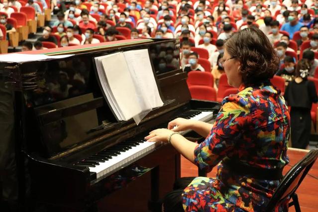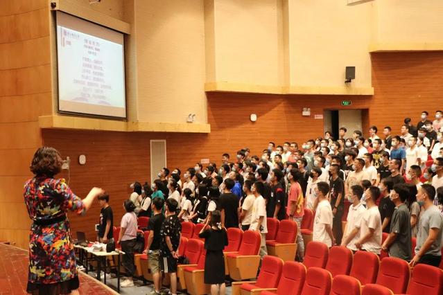 随后,王小露副书记就学生管理工作进行详细的介绍。在王书记的带领下,同学们共同学习了南邮校训、南邮精神。9月10日,我校隆重发布南京邮电大学校歌《信达天下》,在大会现场,王书记讲述了创作背后动人的故事,并以钢琴伴奏带领全体2020级新生共同学习,同唱一首歌。