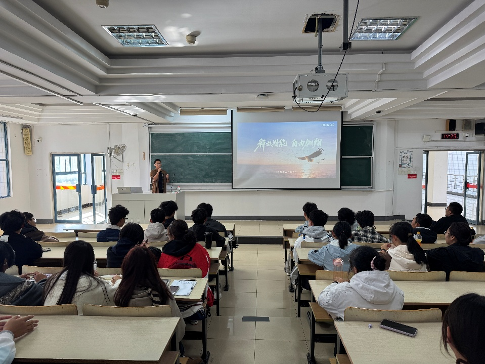 10月22日,计算机学院成功举办了一场面向2025级软件工程专业新生的职业辅导讲座。本次活动特邀荣耀公司南京研发中心招聘经理李岳聪担任主讲嘉宾,为初入大学校园的同学们带来了一场内容扎实、指引性强的“释放潜能 自由翱翔”职业规划课。学院党委副书记兼副院长刘星及软件工程专业全体辅导员共同出席了此次活动。