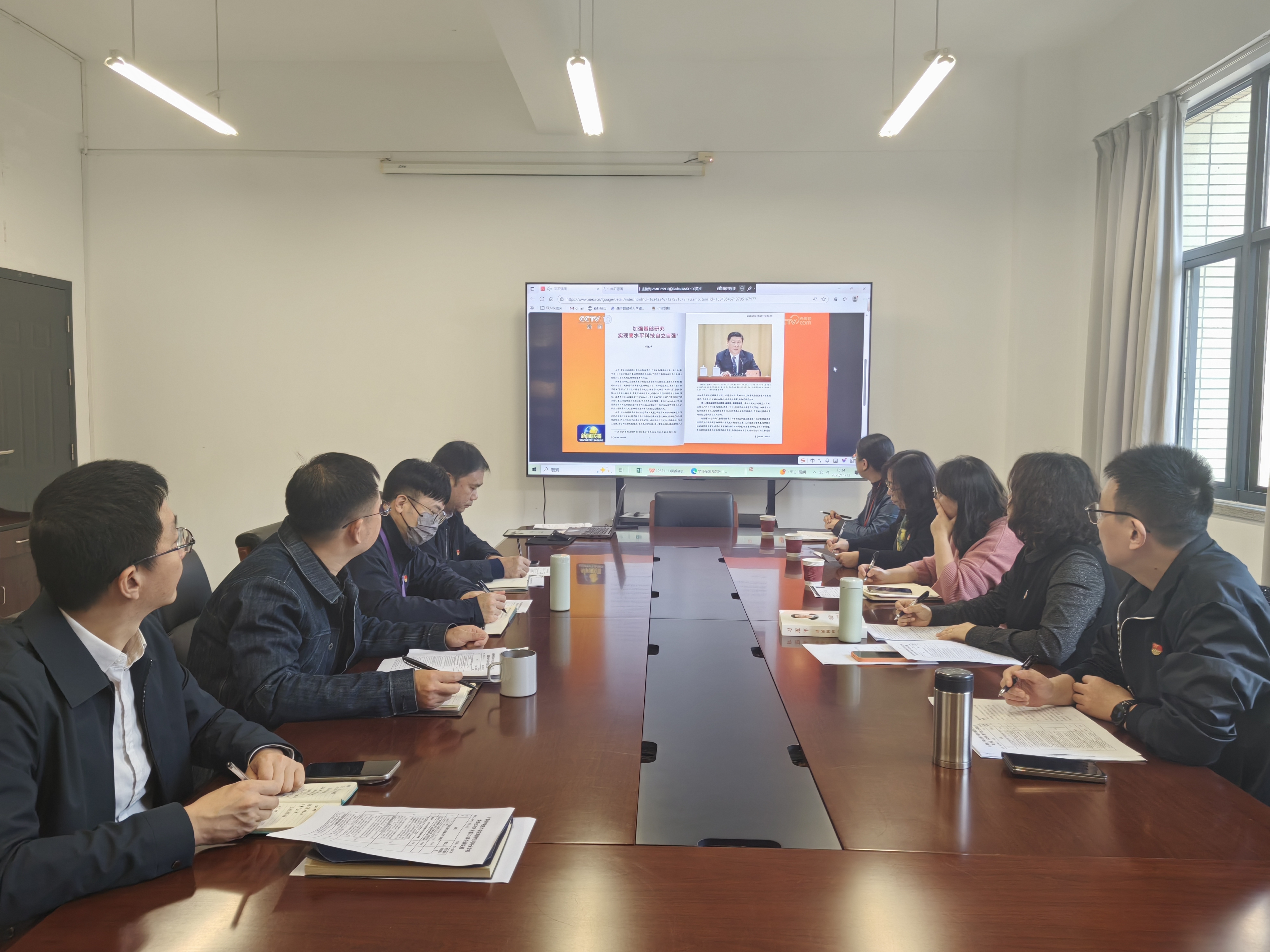 11 月 13 日,学院党委理论学习中心组在 327 会议室召开专题学习会,集中深入学习习近平总书记重要文章《加强基础研究 实现高水平科技自立自强》。学院党委书记、理论学习中心组组长尹志丽主持会议并作总结讲话,中心组全体成员参加学习。