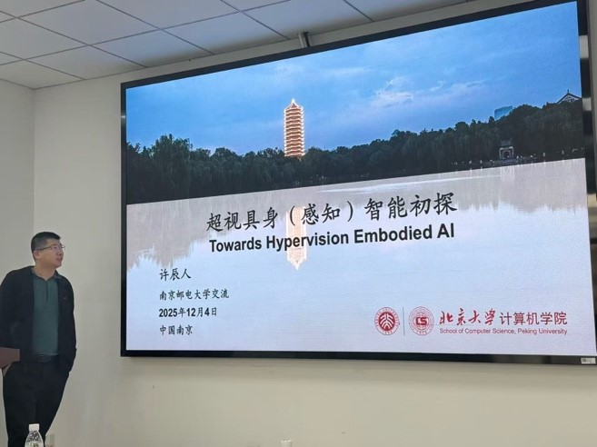 2025年12月4日下午,北京大学博雅长聘副教授、计算机学院院长助理、网络与高能效计算研究所副所长许辰人教授应邀来计算机学院、软件学院、网络空间安全学院作题为《多模态超视具身(感知)智能初探》的专题学术报告。报告由盛碧云副教授主持,我院老师和学生参加了报告会。