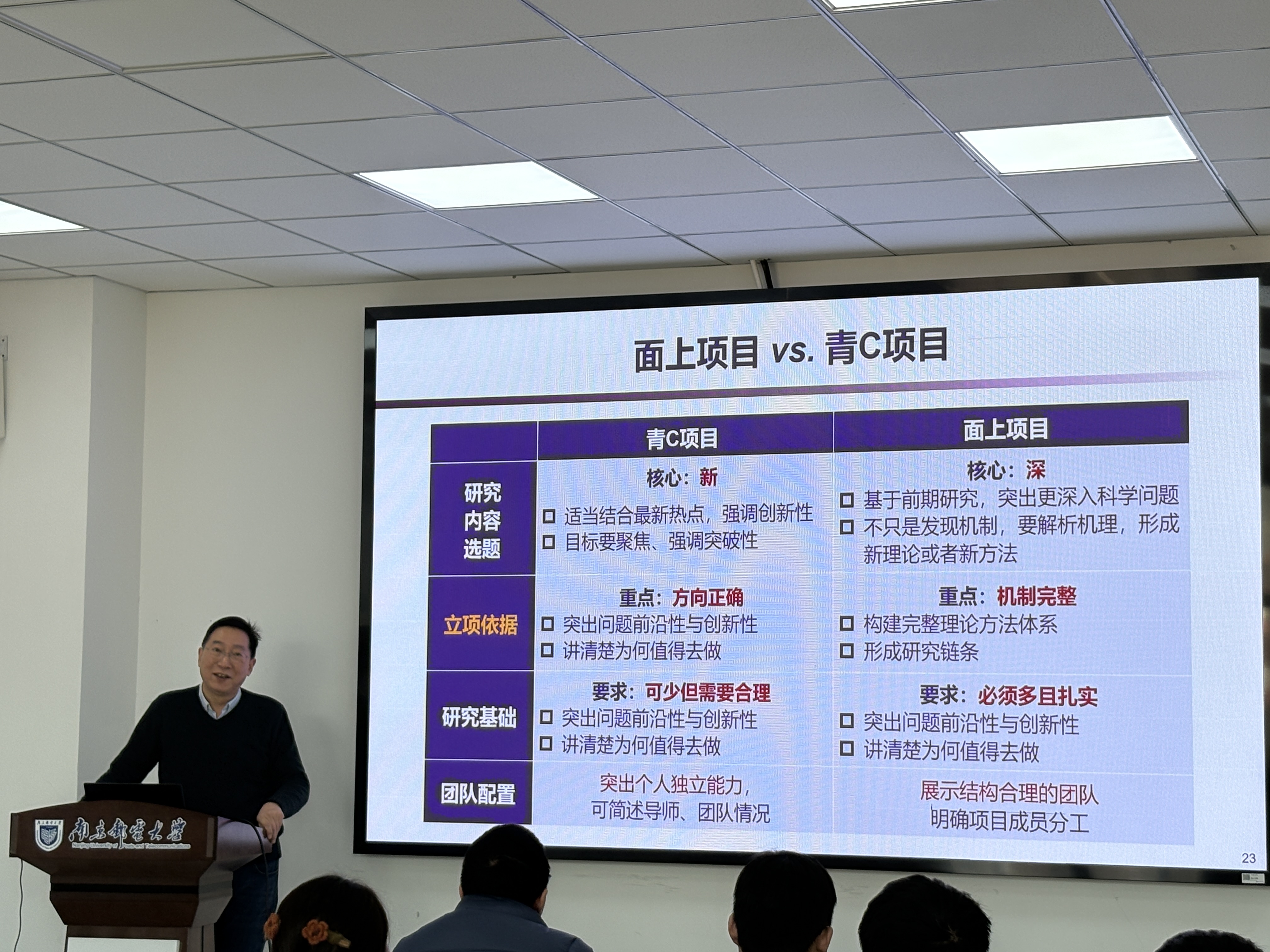 叶保留结合2026年度指南与最新政策,建议选题紧扣学科新动向,避免盲目追热点,并思考AI与自身方向的赋能结合;题目宜小不宜大,突出错位优势,关注国内同行进展。他强调基金重在“探索”,申报书应呈现研究过程而非堆砌公式,团队配置“精干”为先,成员兼顾成果产出与年龄梯度。撰写环节,叶教授给出“一张图”整体思路:研究内容限4项以内,应用场景可验证;项目名称须新颖简洁,代码与关键词宜精准;摘要须形成“背景—问题—思路—突破—价值”闭环;科学问题需从国家需求切入,层层剖析挑战,再亮出创新对策。