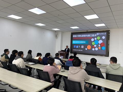 11月29日,第二期与名师“同上一堂课”系列活动暨示范性基层教学组织活动:《微型计算机原理与接口技术》和《计算机系统基础》课程组授课研讨会在计算机学科楼338会议室举行。研讨会邀请了第三届全国高校教师教学创新大赛一等奖获得者陈燕俐教授作为主讲嘉宾,教务处副处长兼教师教学发展中心副主任刘胜利教授出席,研讨会由计算机学院、软件学院、网络空间安全学院副院长陈志教授主持,基层教学组织教师代表和“青年教师导师制”项目在培青年教师参加观摩学习。