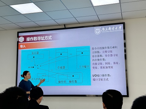 研讨会上,青年教师业苇渡老师进行了题为《存储器操作数寻址》的教学节段试讲。与会专家对业老师授课内容娴熟、课件清晰简洁、善用启发式提问等优点给与了充分肯定,并提出了细致而全面的改进建议。随后,陈燕俐教授进行了该教学节段的授课示范。陈教授授课思路清晰、鞭辟入里,善于创设情境,将抽象的概念生活化、具体化,其扎实而深厚的教学功力为大家示范了一堂有趣而又有实效的好课。
